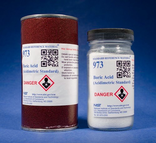 SRM 973 硼酸被認證為已知測定的化學品,旨在用作主要的酸度標準。 NIST SRM 973 - 硼酸 由裝在 100 g 瓶中的高純度硼酸 (H3BO3) 組成。