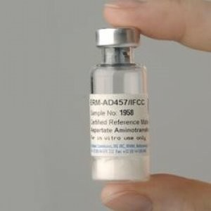 ERM-AD457/IFCC 天冬氨酸轉氨酶(AST)樣品描述經認證的參考物質是1.0 mL重組大腸桿菌AST的凍干粉末,在pH為7.5的緩沖液中,含有牛血清白蛋白、磷酸吡哆醛、糖和抗生素。它被裝入一個裝有橡膠塞和鋁帽的玻璃小瓶中,允許通過隔膜注射直接重建。小瓶處于氬壓(800mbar)
