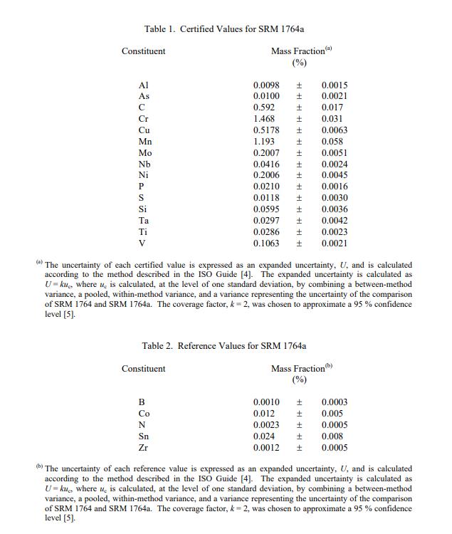 產品名稱:標準參考物質 NIST SRM 1764a - 低合金鋼