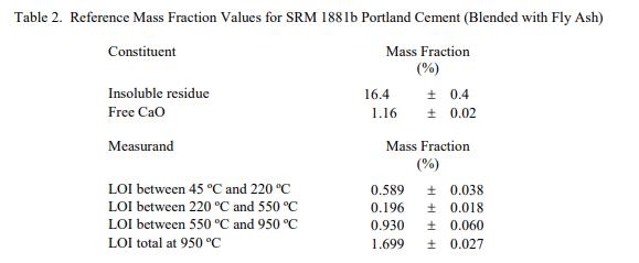 成分和燒失量 (LOI) 的參考值在表 2 中報(bào)告為質(zhì)量分?jǐn)?shù)。 NIST 參考值是未經(jīng)認(rèn)證的值,它是基于可用數(shù)據(jù)對(duì)真實(shí)值的當(dāng)前最佳估計(jì);但是,該值不符合 NIST 認(rèn)證標(biāo)準(zhǔn)并提供相關(guān)的不確定性可能僅反映測(cè)量再現(xiàn)性,可能不包括所有不確定性來(lái)源,或者可能反映多種分析方法之間缺乏足夠的統(tǒng)計(jì)一致性 [2]。