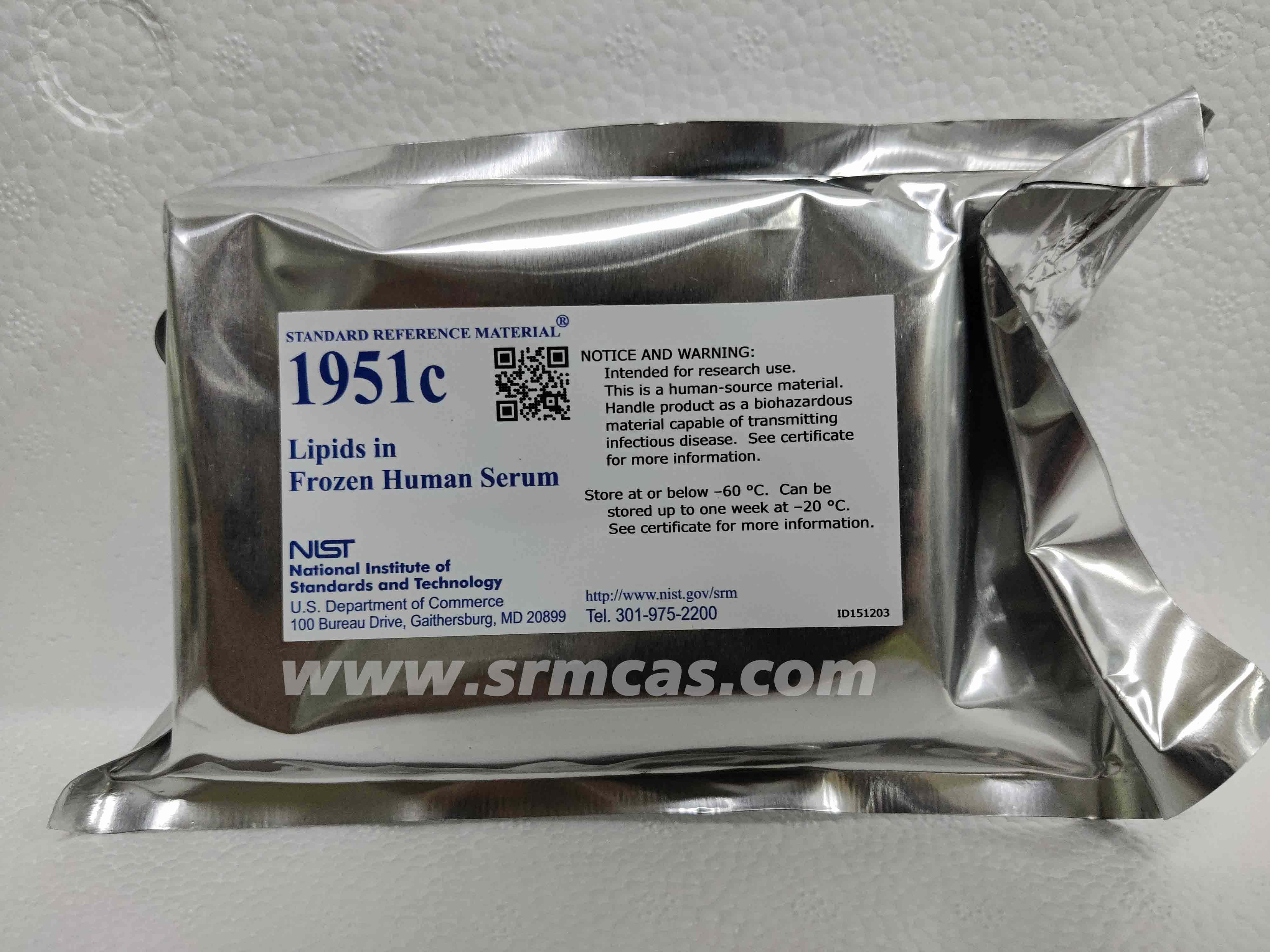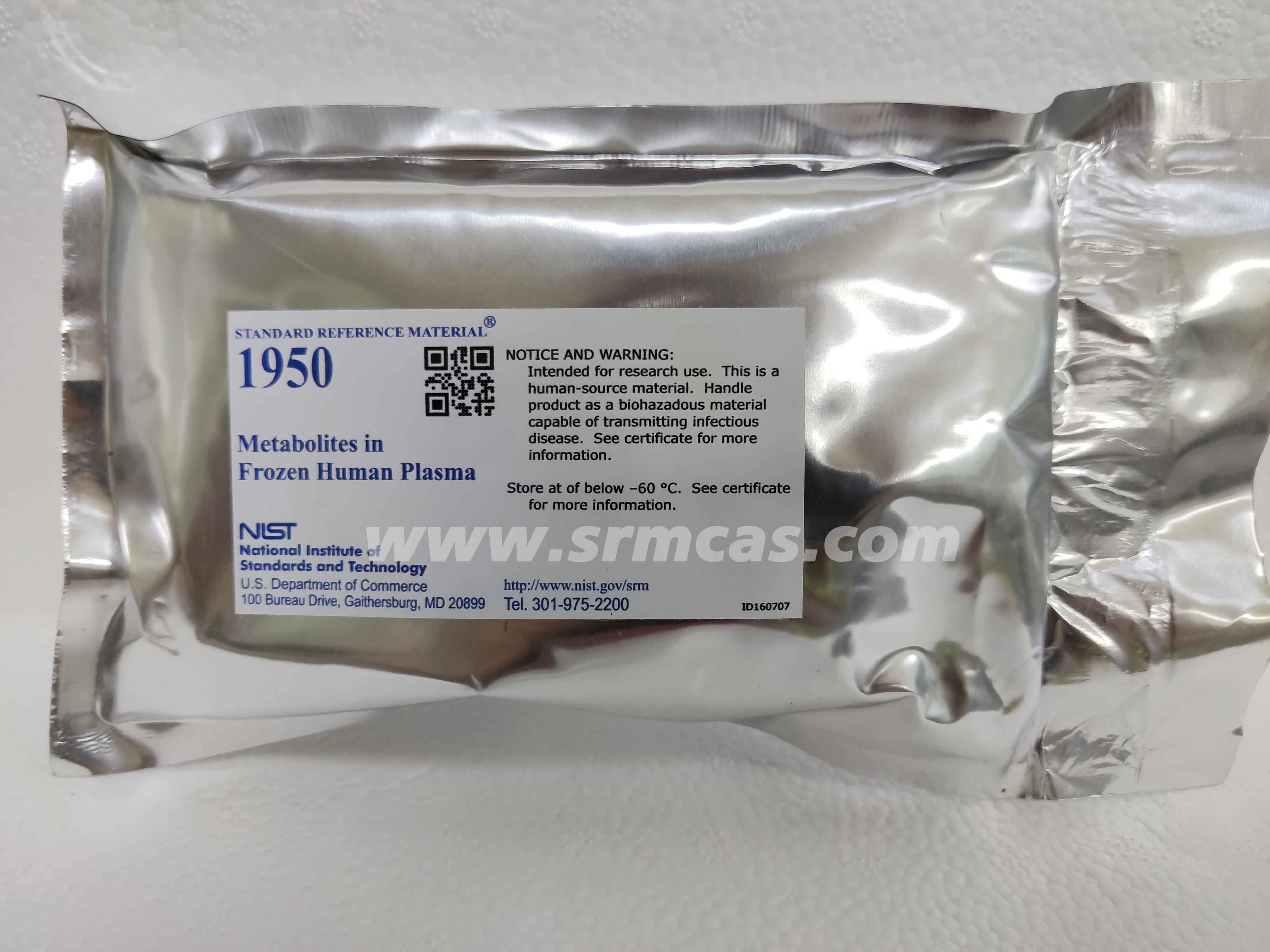 SRM 1958 - 強化人體血清中的有機污染物 用于研究用途。這是一種人體來源材料。將產品作為能夠傳播傳染病的生物危害材料進行處理。