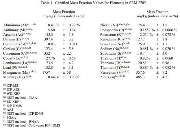 NIST SRM 2702海洋沉積物中的無機(jī)物(標(biāo)準(zhǔn)品) 的認(rèn)證在規(guī)定的測量不確定度內(nèi)有效期至 2022 年 10 月 1 日,前提是按照本證書中給出的說明處理和儲存 SRM(參見“處理、儲存和使用說明”) )。但是,如果 SRM 損壞、污染或以其他方式修改,則認(rèn)證無效。