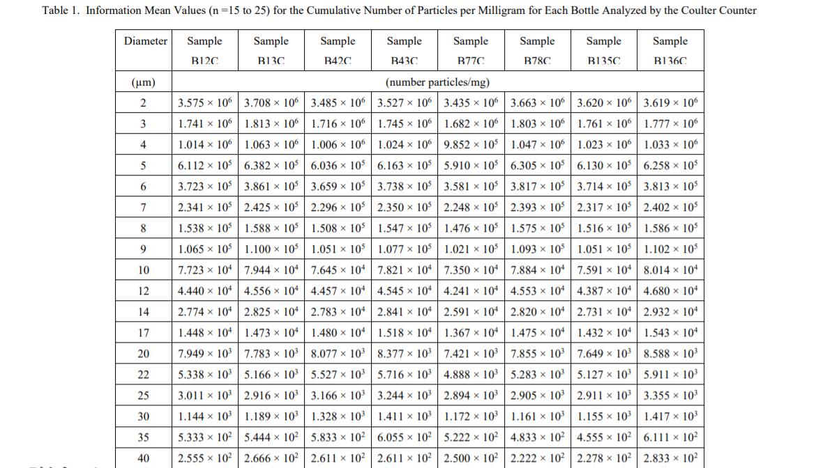 一個(gè) RM 8631b 單元由 20 克天然礦物粉塵組成,該礦物粉塵成分不均勻,尺寸多分散。RM 8631b 可與國(guó)際標(biāo)準(zhǔn)化組織方法 ISO 11171:2016 液壓流體動(dòng)力 - 液體自動(dòng)粒子計(jì)數(shù)器的校準(zhǔn) [2] 結(jié)合使用。使用此方法并遵循本報(bào)告中描述的“使用說明",RM 8631b 在每個(gè)直徑的顆粒濃度將通過根據(jù) NIST 標(biāo)準(zhǔn)參考材料 2806x、液壓油中的中等測(cè)試粉塵 (MTD) 進(jìn)行校準(zhǔn)來確定。