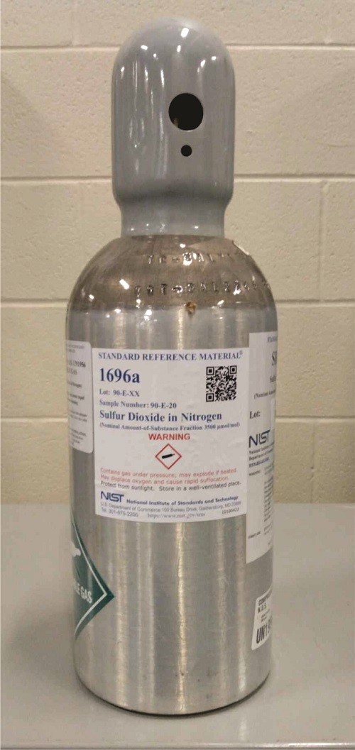 產品名稱:標準參考物質 NIST SRM 1696a - 氮氣中的二氧化硫(公稱物質含量為3500毫微升/摩爾)